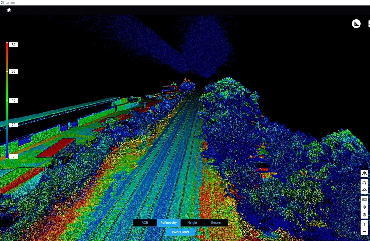 Millions of precise 3D points with full attribute data (X-Y-Z-R-G-B-I), supporting detailed terrain modeling, feature extraction, and volumetric analysis.